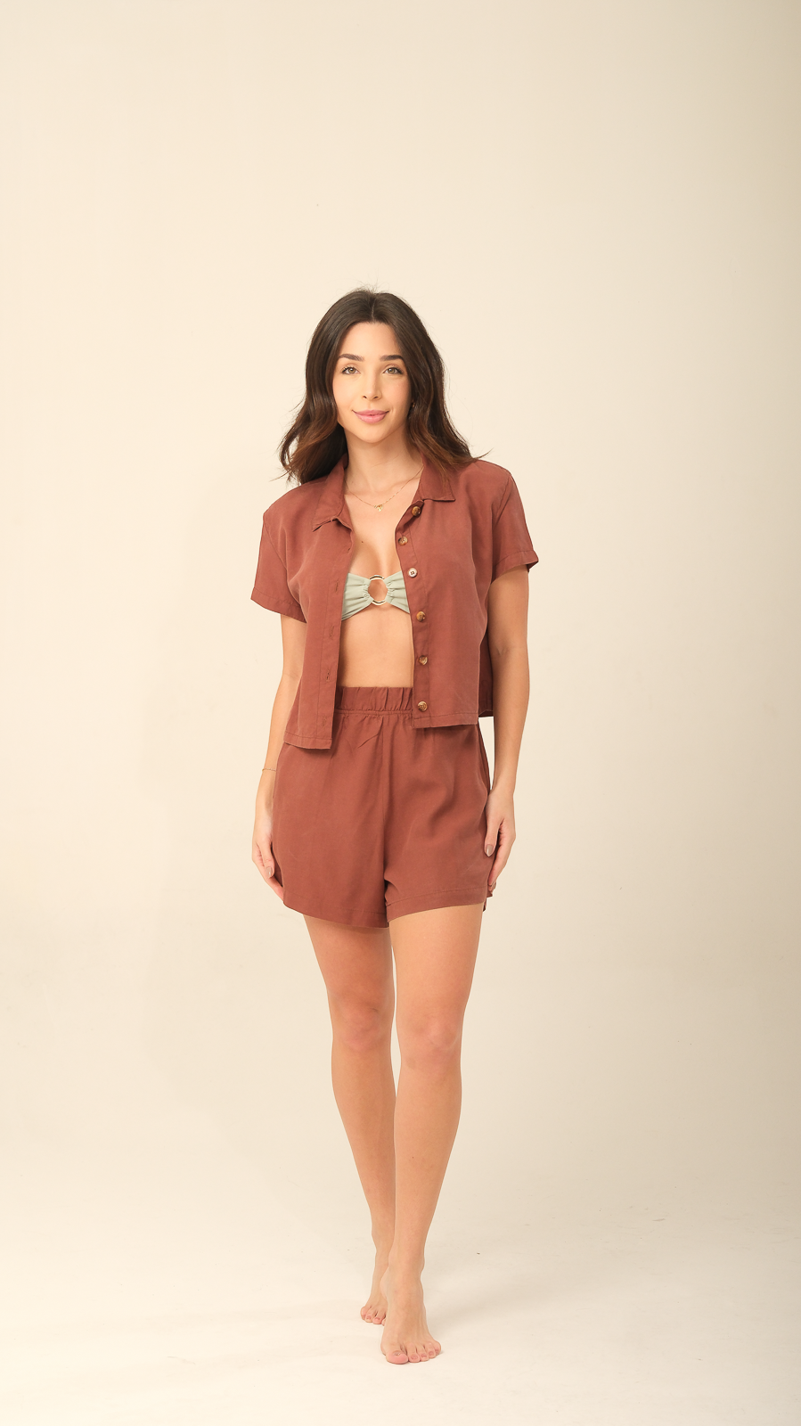 SHORT AMARÍ - CINTURA ALTA - POÁ AMARELO