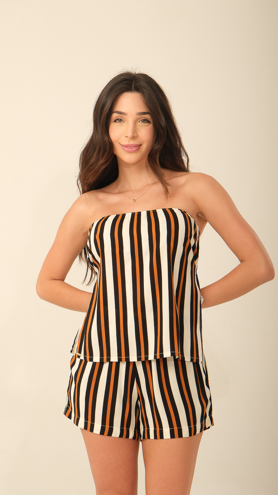 SHORT AMARÍ - CINTURA ALTA - LISTRADO AZUL MARINHO