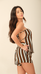 SHORT AMARÍ - CINTURA ALTA - LISTRADO AZUL MARINHO