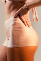 O Short Nalu Rosê é um modelo curto, cintura alta hot pant e justo, que proporciona um molde incrível no corpo. Ele é feito em um tecido de alta qualidade de Poliamida brilhante trilobal (85%) com Elastano (15%), trazendo um visual sofisticado de brilho iridescente, toque macio e com elasticidade.