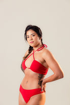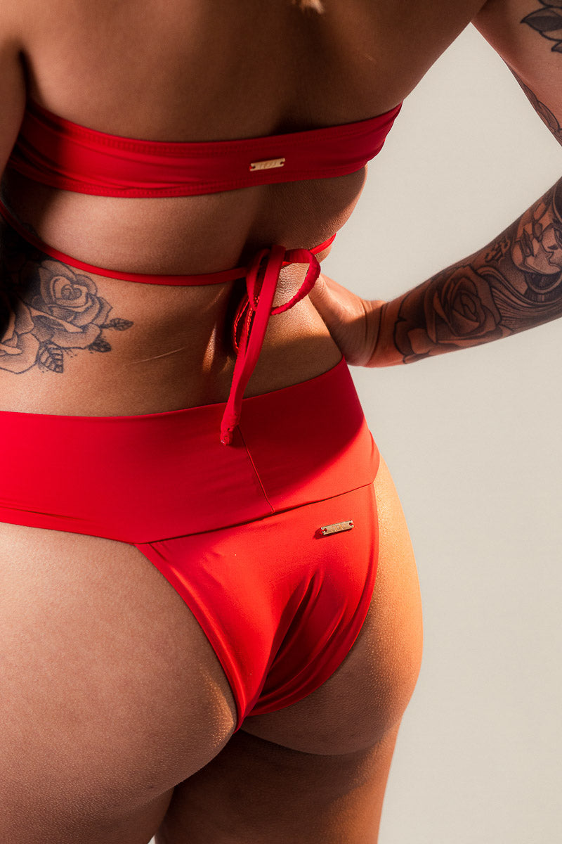 O Top Bridge Vermelho é um modelo de top de amarração, com alças finas para variados tipos de amarrações e faixa mais grossa fixa nas costas, não possui bojo. Ele é feito em um tecido de alta qualidade de Poliamida (87%) com Elastano (13%), trazendo um toque leve e com elasticidade.