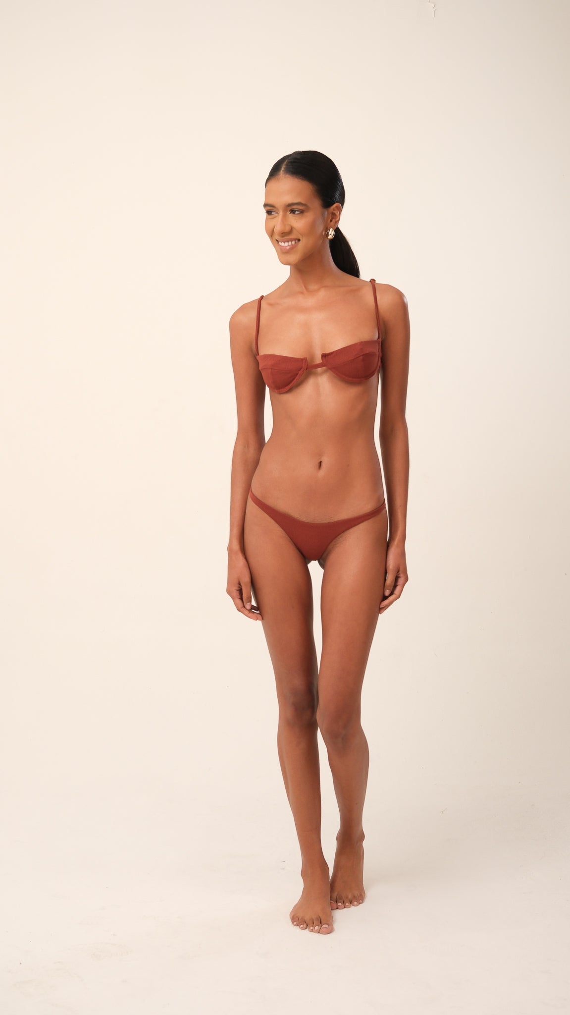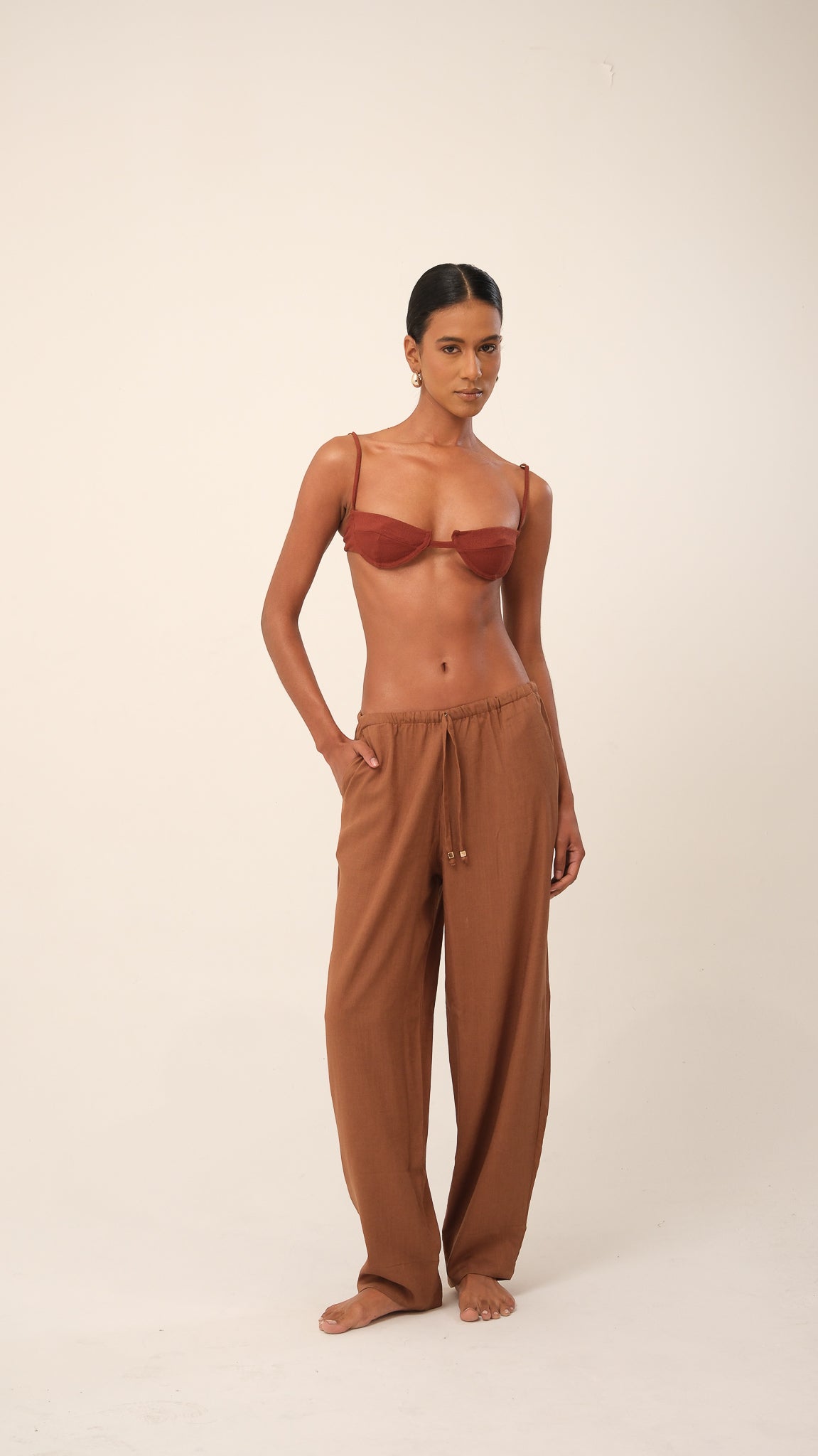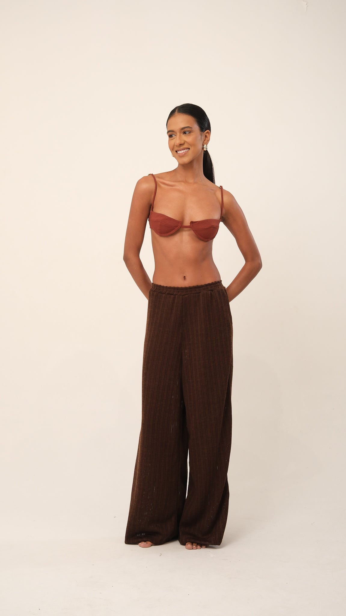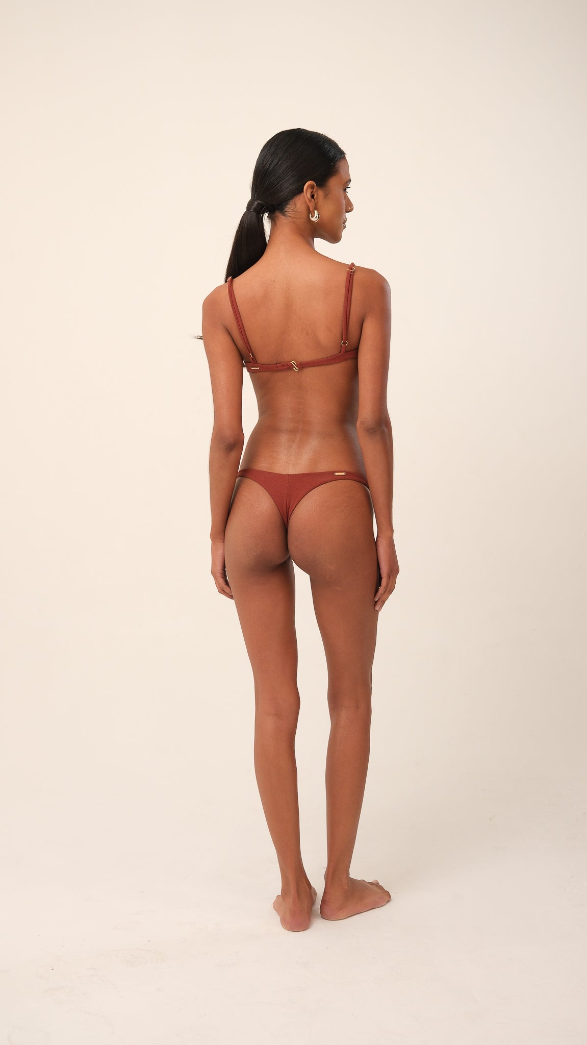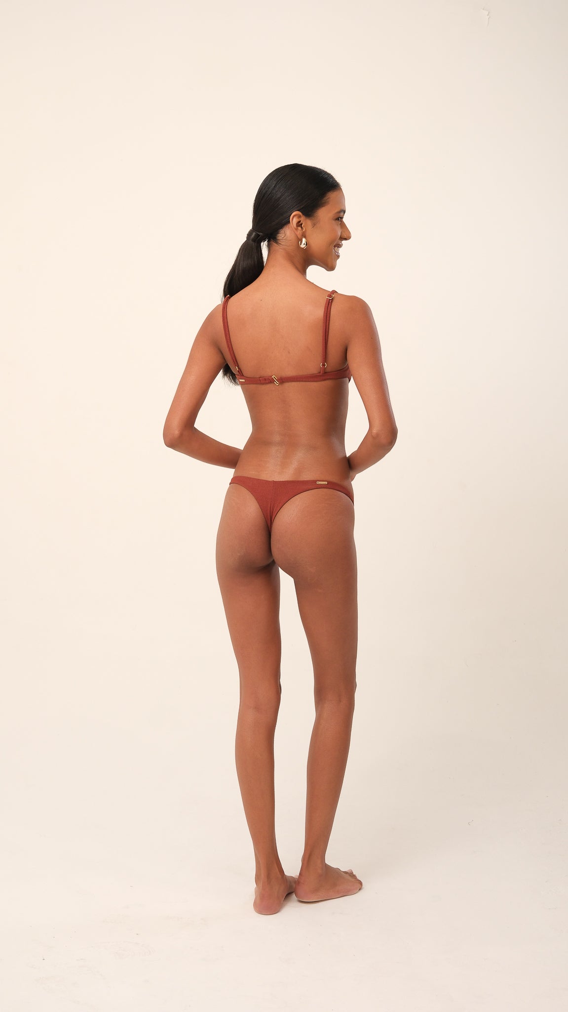 Possui alças com regulagem e fecho nas costas com casinhas, permitindo ajuste preciso ao corpo. Um modelo atemporal e versátil, ideal tanto para dias de praia quanto para composições urbanas com sobreposição. Use com a calcinha do conjunto ou de forma independente em produções criativas.