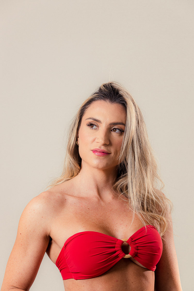 - Modelo tomara que caia com anel amadeirado;