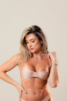 The Queensland Rosê Top is a half-cup top model, without padding, with adjustable straps for adjustment and tying at the back. It is made from a high-quality fabric of trilobal shiny Polyamide (85%) with Elastane (15%), bringing a sophisticated look of iridescent shine, soft touch and elasticity, ensuring comfort for you to enjoy the day at the beach or pool without transparency.
