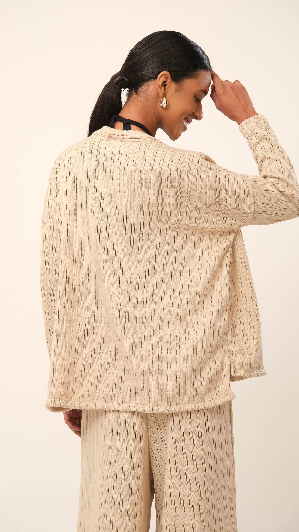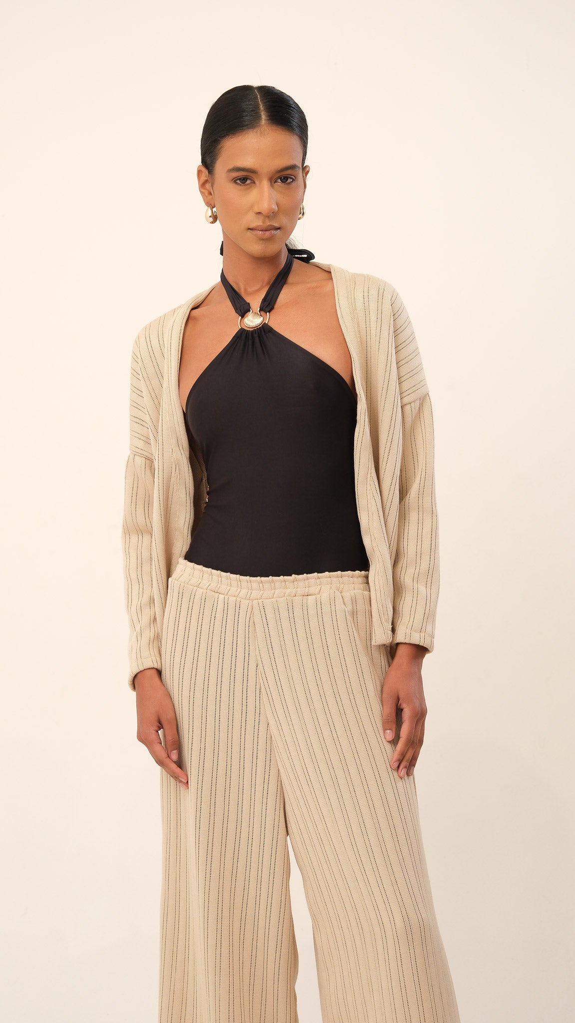 O nome Refúgio traduz a essência da peça: proteção, versatilidade e sofisticação. Ideal para compor looks casuais. Use com a calça do conjunto ou de forma independente em produções criativas.