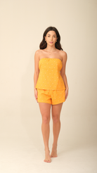 BLUSA LENÇO AMARÍ POÁ AMARELO - TOMARA QUE CAIA, COSTAS ABERTAS