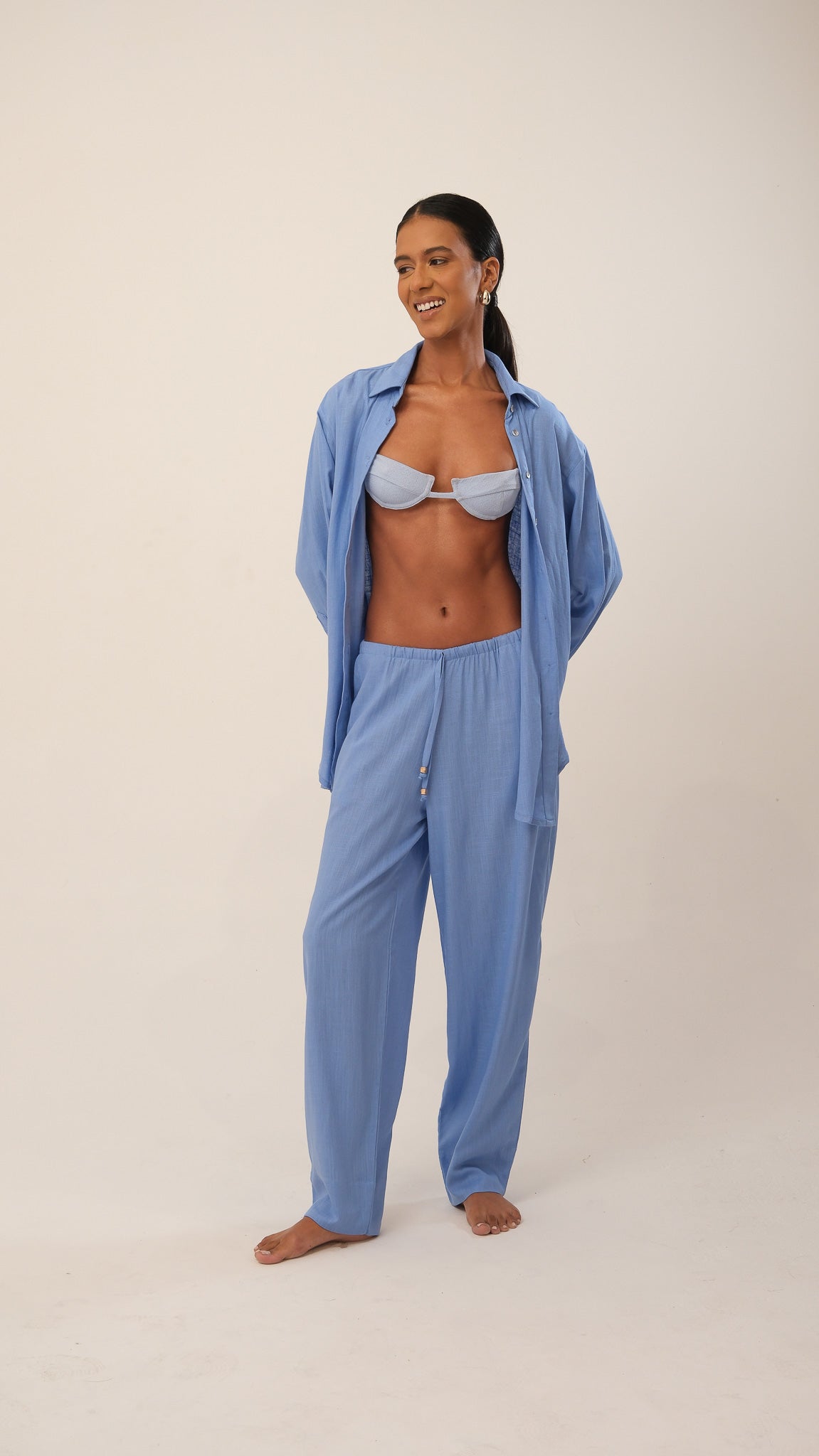 Com comprimento alongado, a Camisa Origem transita entre a saída de praia sofisticada e a sobreposição perfeita para composições urbanas. Seu abotoamento frontal, as mangas longas e o caimento fluido reforçam a proposta de uma peça versátil, que equilibra conforto e elegância.